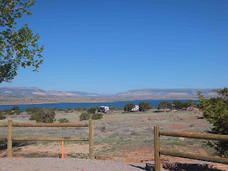 Turned out the campground was an US Corps of Engineers park. A dam had created Abiquiu Lake. The weather was so perfect we were very tempted to stay the night here, but it was only 9:30 in the morning...and we had plans, so we drove on.